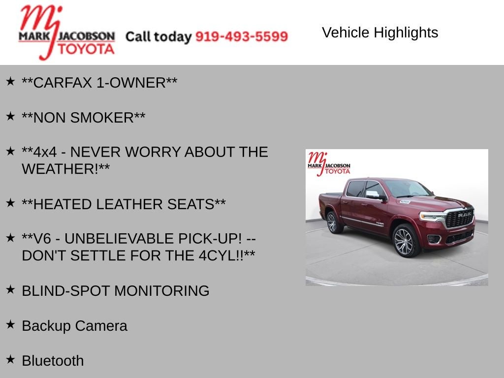 This vehicle has been meticulously maintained and is CARFAX certified as a 1-owner, non-smoker truck. With low mileage and a wealth of premium features, this 2025 Ram 1500 Tungsten is the perfect choice for those who demand the best.