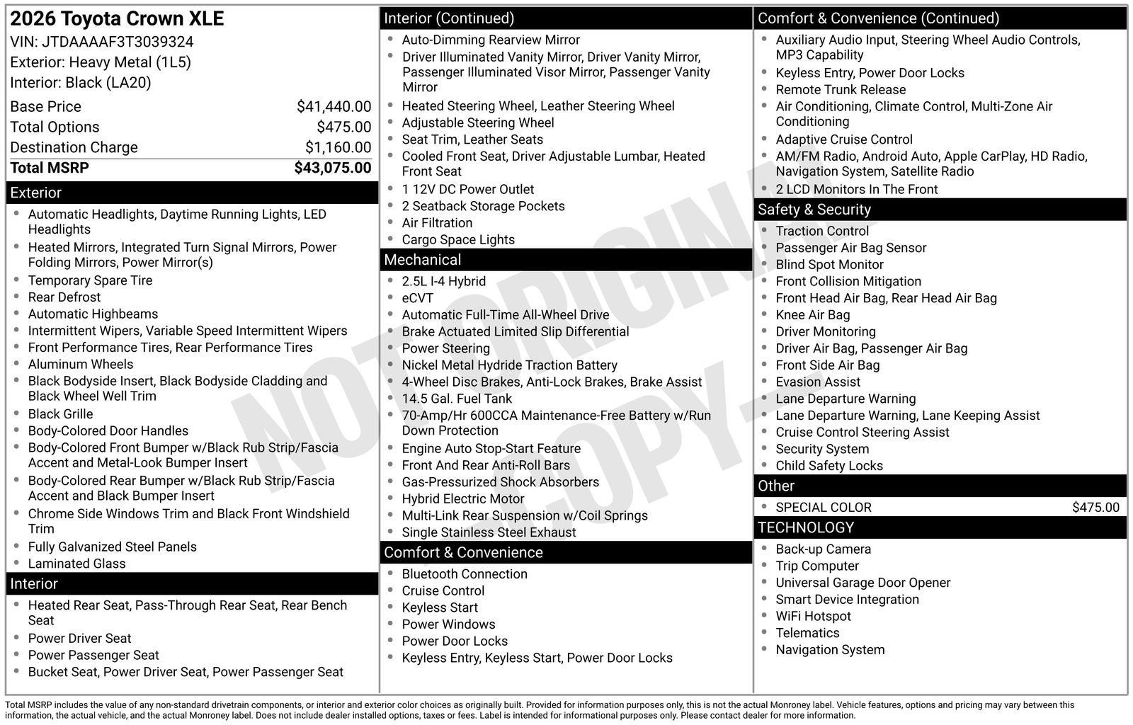 Elevate your driving experience with the 2026 Toyota Crown XLE. This exceptional vehicle combines stunning style, impressive performance, and unparalleled comfort, making it the perfect choice for the discerning driver. Visit our showroom today to take this remarkable Crown XLE for a test drive and discover the difference for yourself.