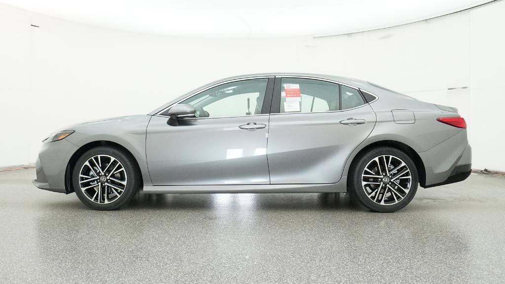 The Camry's striking Heavy Metal exterior color commands attention, while the 18-inch 2-tone multi-spoke machined and black-finished alloy wheels add a touch of sophistication. Step inside and you'll be greeted by a spacious, well-appointed cabin that caters to your every need. The leather-wrapped steering wheel and shift knob, along with the heated steering wheel, provide a premium feel, while the auto-dimming rearview mirror and HomeLink garage door transmitter add convenient functionality.