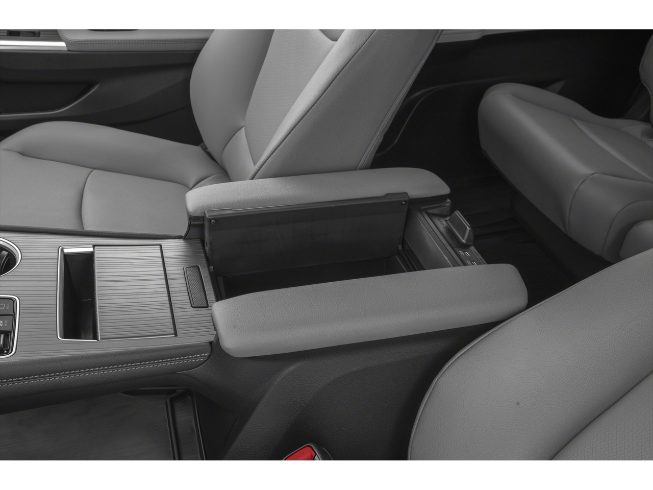 - Fixed center console, pass-through, illuminated storage compartment, and four cup holders
