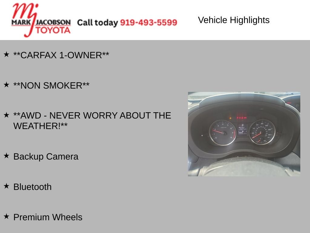 Under the hood, this Crosstrek is powered by a 2.0L 16V DOHC engine paired with a Lineartronic CVT transmission, delivering an impressive 26 city / 33 highway MPG. With standard Symmetrical All-Wheel Drive, you'll have the confidence to tackle any road, rain or shine.