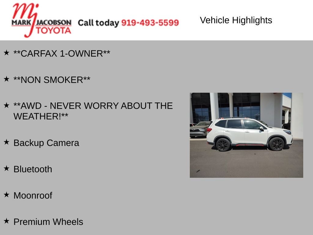 Powered by a robust 2.5L 4-cylinder DOHC engine and Lineartronic CVT, this Forester Sport delivers an impressive 26 city and 33 highway MPG, ensuring you can go the distance without sacrificing efficiency. The standard Symmetrical All-Wheel Drive system provides exceptional traction and control, giving you the confidence to tackle any road, rain or shine.