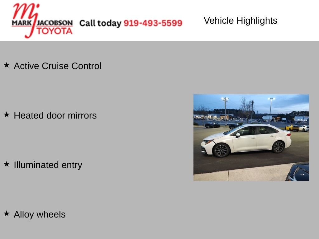 Boasting a striking white exterior, the Corolla SE commands attention with its premium features, including: