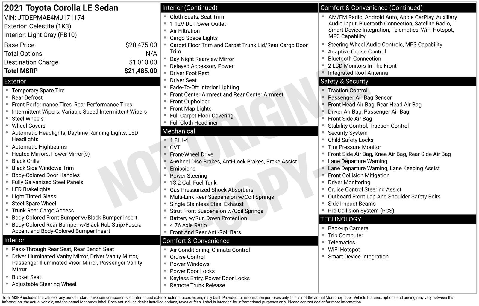We invite you to experience the 2021 Toyota Corolla LE for yourself. Visit our showroom today and let us demonstrate how this exceptional vehicle can elevate your driving experience. We're confident you'll be impressed by the quality, features, and value this Corolla has to offer.