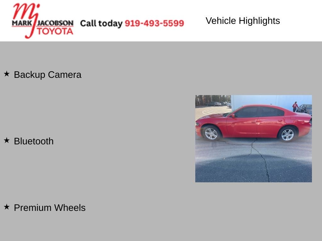 Fuel efficiency is also a standout feature, with an EPA-estimated 19 MPG in the city and 30 MPG on the highway, ensuring you can enjoy the open road without frequent stops at the pump. The Charger SXT's well-appointed interior offers a range of premium amenities, including - a Backup Camera, Bluetooth®, and Premium Wheels, creating a comfortable and connected driving experience.