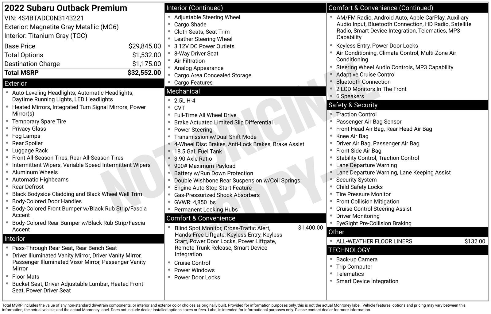 Experience the ultimate in adventure-ready luxury. Visit our showroom today and discover the 2022 Subaru Outback Premium – the perfect blend of capability, comfort, and style.