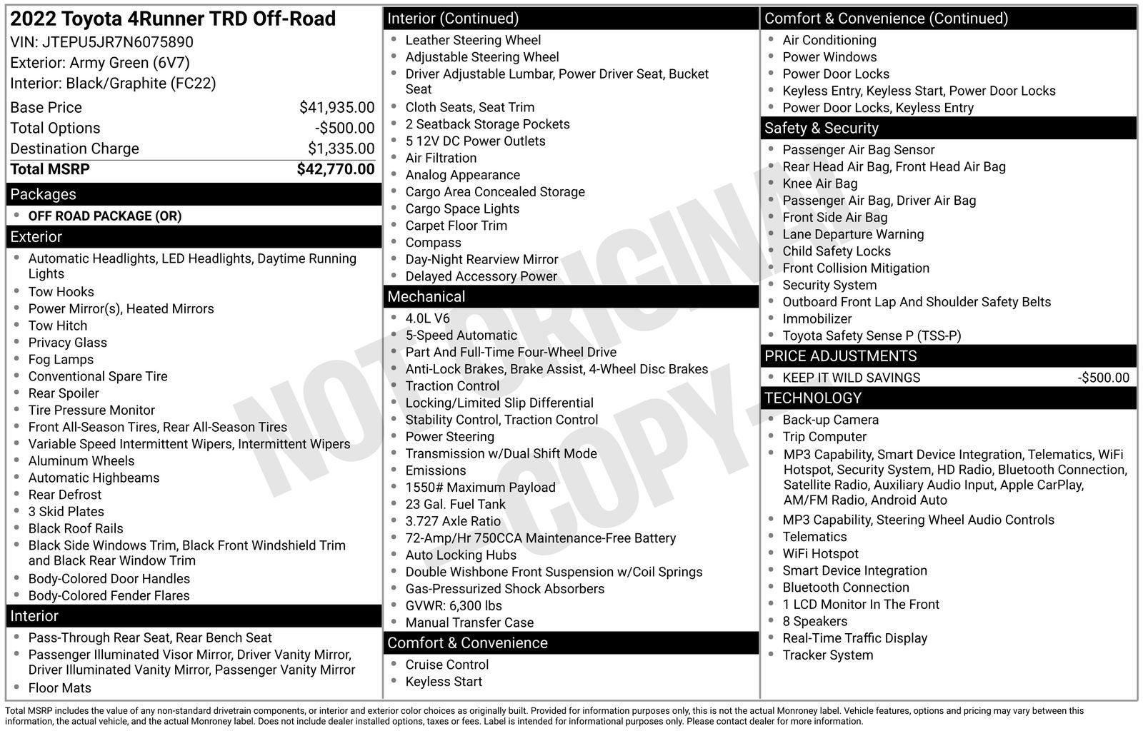 - Vehicle Name: Toyota 4Runner