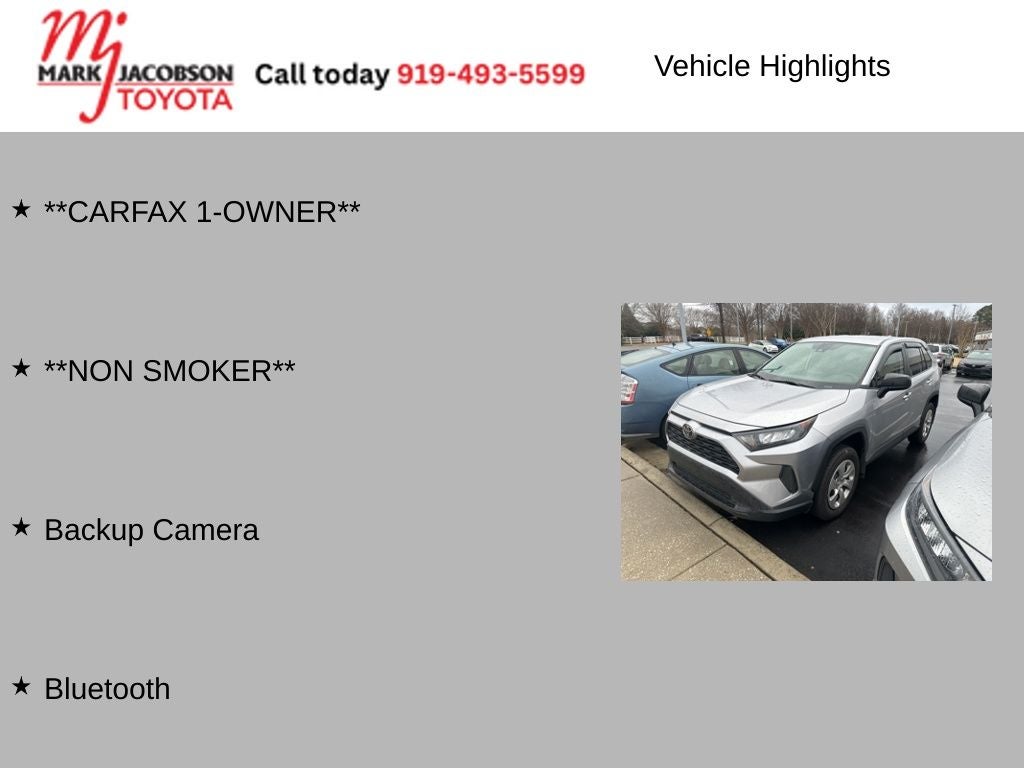 Elevate your driving experience with this well-equipped RAV4 LE. Enjoy the convenience of Bluetooth® connectivity, allowing you to seamlessly integrate your smartphone, and the added peace of mind provided by the backup camera. This vehicle has been meticulously maintained, ensuring a smooth and reliable ride every time you get behind the wheel.