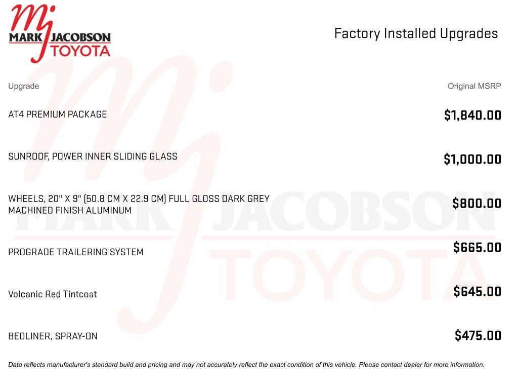 Dealer Installed Accessories do not include any additional optional accessories customer may choose to add to vehicle.