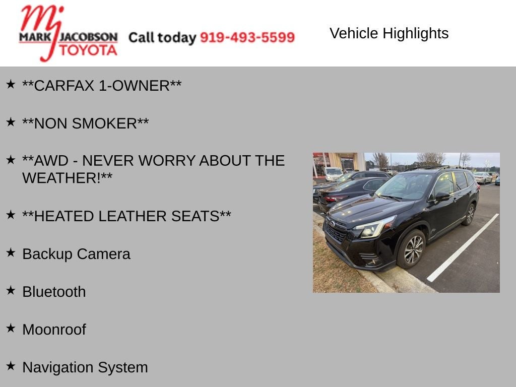 Whether you're embarking on a family adventure, commuting to the office, or tackling the great outdoors, this 2023 Subaru Forester Limited is the perfect companion. Experience the perfect blend of capability, comfort, and technology that Subaru is known for. Visit our showroom today and let us demonstrate why this Forester is the ideal choice for your next vehicle.