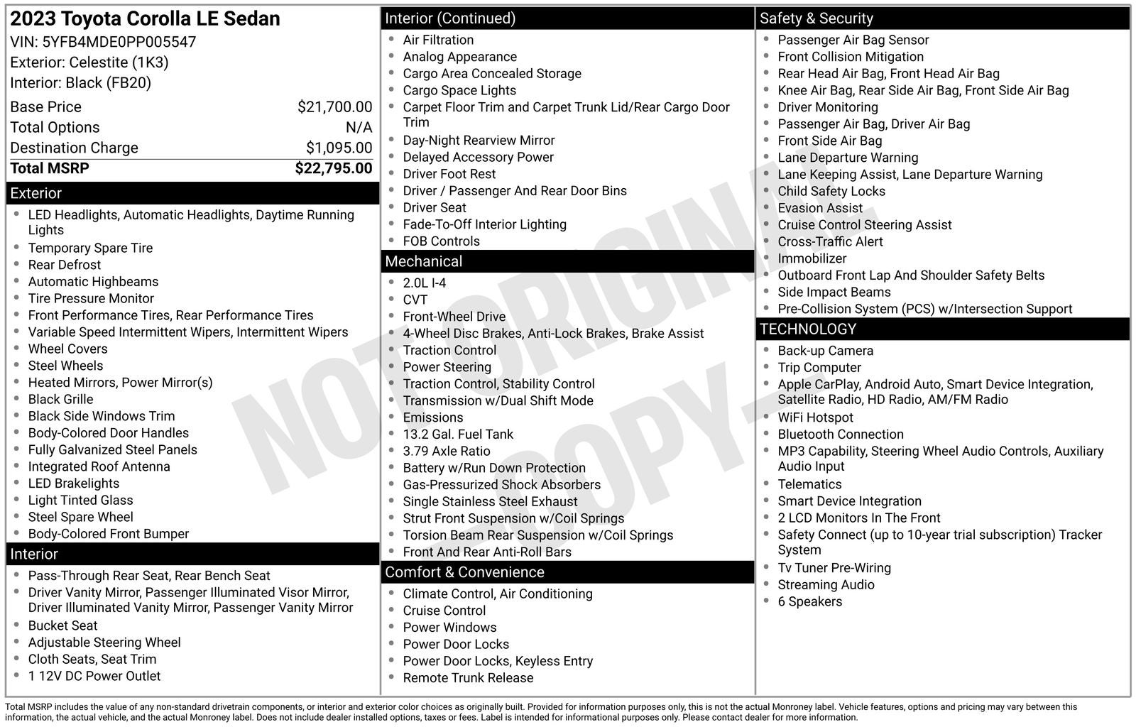 We invite you to experience the exceptional value and peace of mind that this 2023 Toyota Corolla LE has to offer. Visit our showroom today and let us demonstrate how this remarkable vehicle can enhance your driving experience.