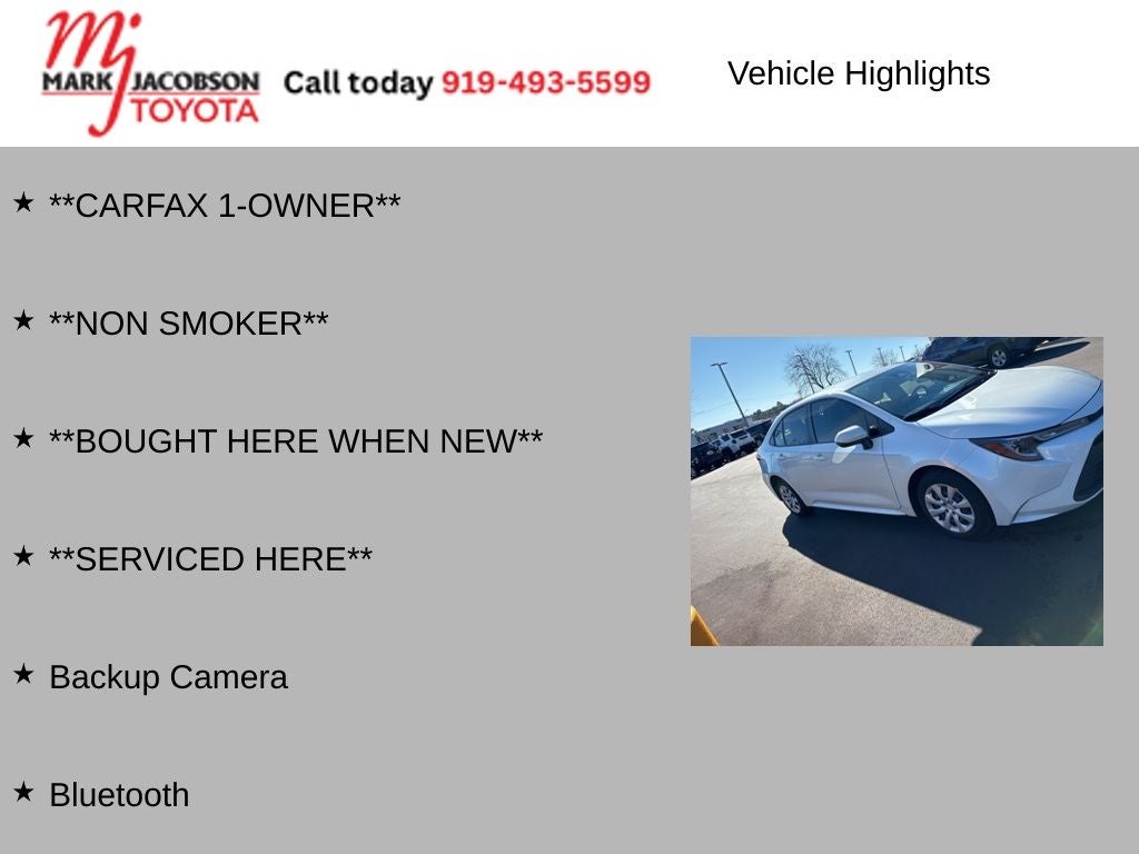 Experience the exceptional value and unparalleled craftsmanship of this 2023 Toyota Corolla LE. With its stunning exterior, well-appointed interior, and advanced technology features, this Corolla is the perfect blend of style, performance, and practicality. Visit our showroom today and let us demonstrate why this Corolla should be your next vehicle of choice.