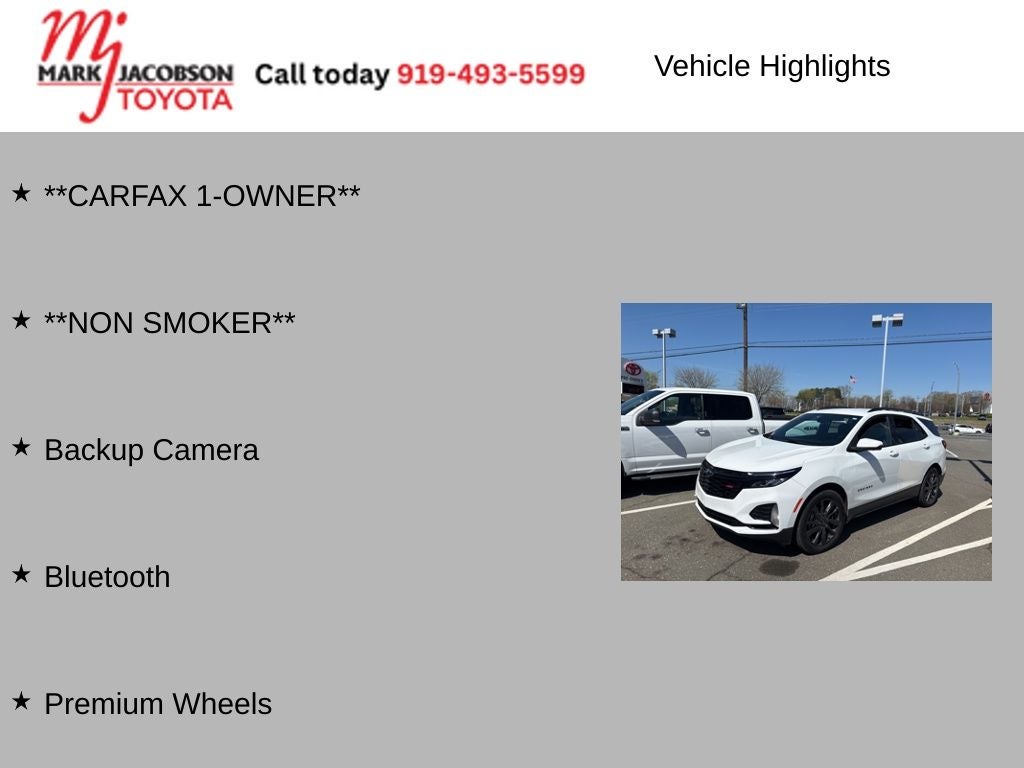 Beneath the sleek exterior lies the power and efficiency of the 1.5L DOHC engine, paired with a 6-speed automatic transmission. With an impressive fuel economy of 26 city/31 highway MPG, the Equinox RS delivers the perfect balance of performance and efficiency, making it an exceptional choice for your daily commute or weekend adventures.