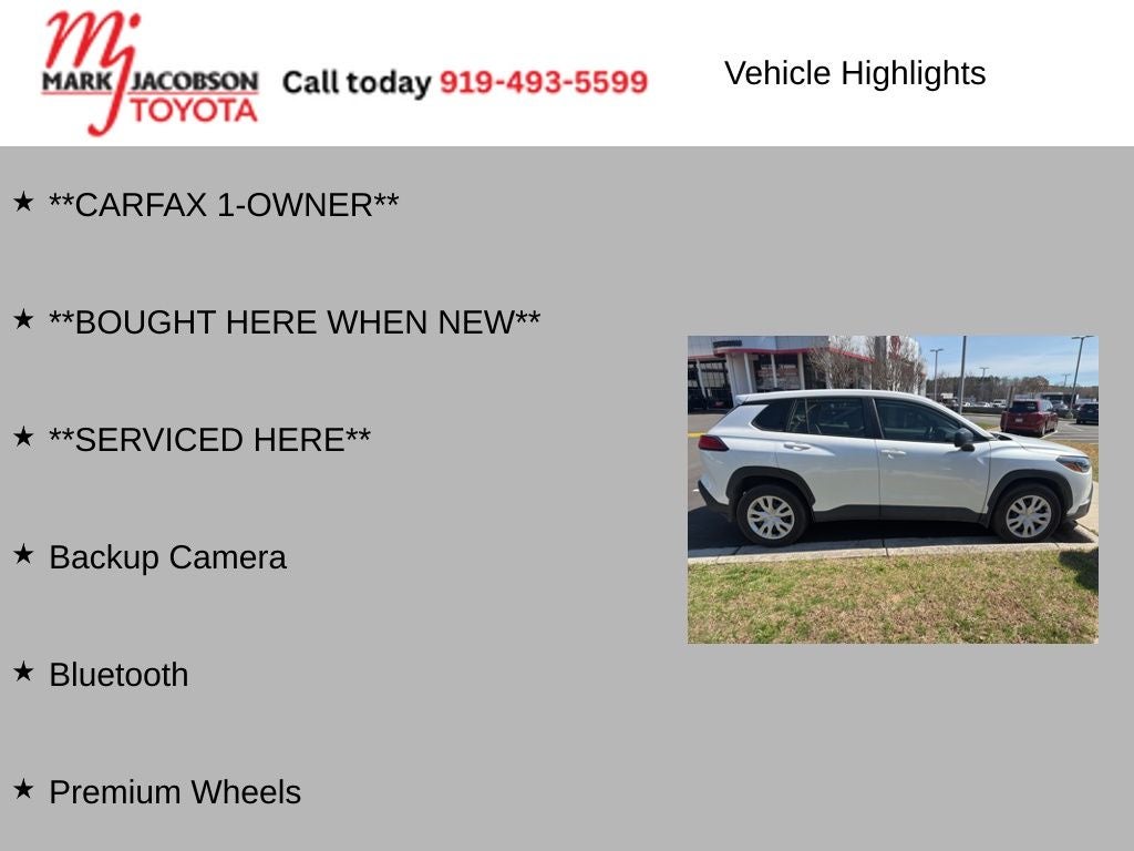 This one-owner Corolla Cross, serviced right here at our dealership, comes equipped with a remarkable set of features, including: