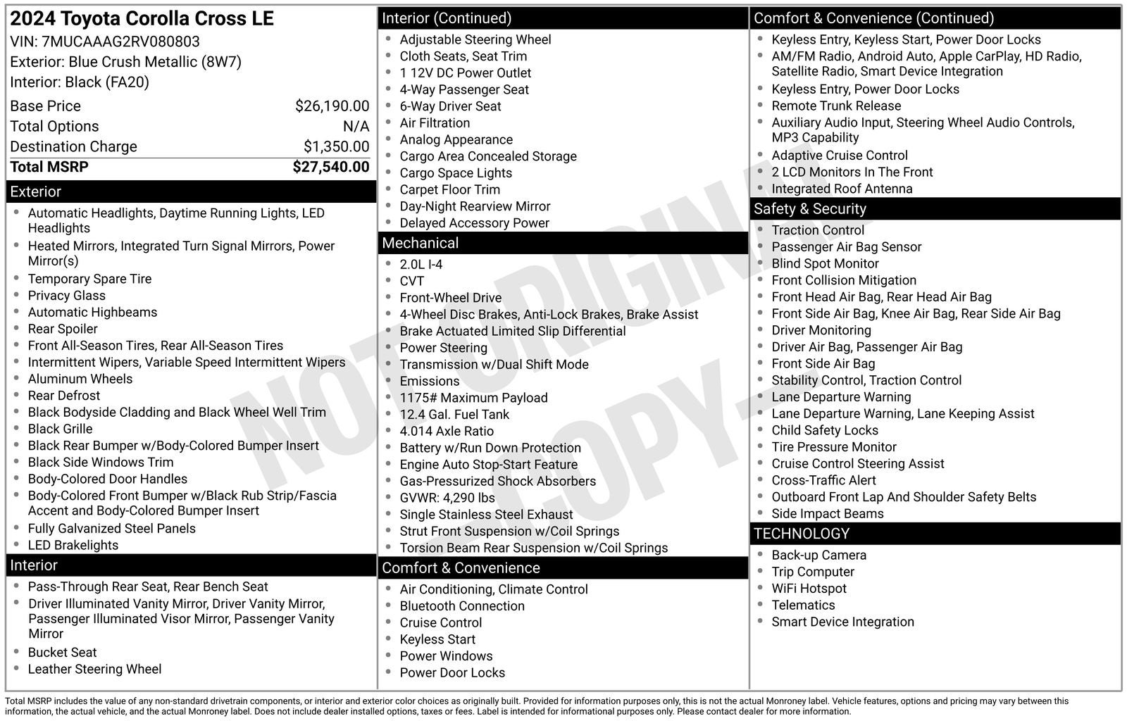 Whether you're commuting to the office, embarking on a weekend adventure, or transporting the whole family, this 2024 Toyota Corolla Cross LE is the perfect companion. With its exceptional fuel efficiency, impressive versatility, and uncompromising quality, it's a vehicle you can trust to deliver an exceptional driving experience, day in and day out.