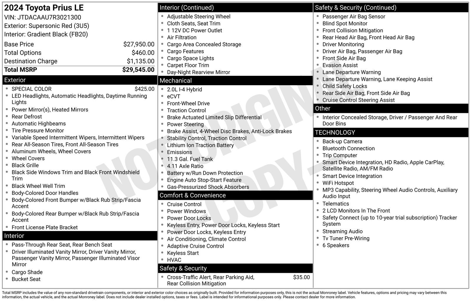 We invite you to experience the exceptional 2024 Toyota Prius LE for yourself. Schedule a test drive today and discover the perfect blend of efficiency, technology, and style that will elevate your driving experience. At our dealership, we're committed to providing you with an exceptional customer service experience, ensuring your complete satisfaction. We look forward to welcoming you and helping you find the perfect Prius LE to meet your needs.