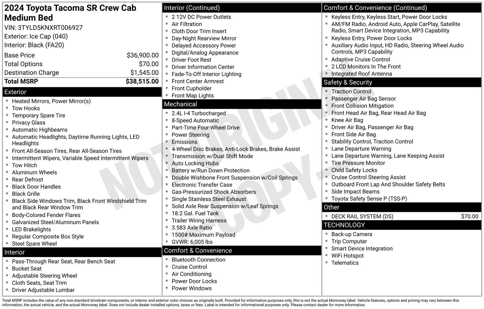 - GVWR: 6,005 lbs