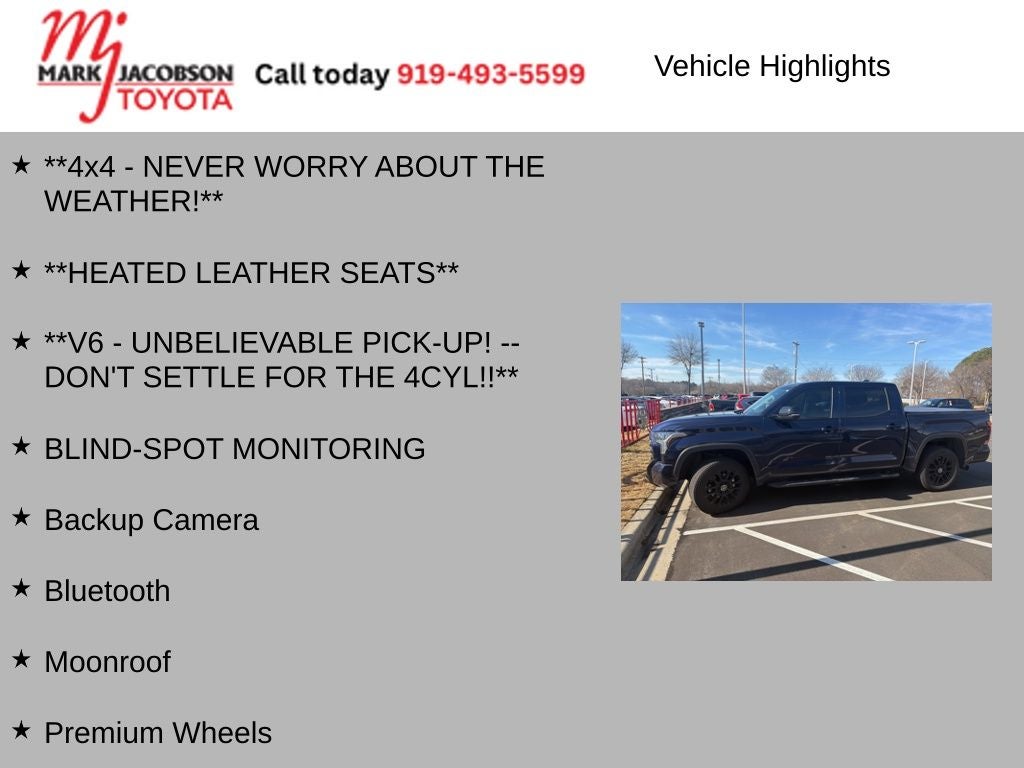 Stepping inside, you'll be enveloped in a world of luxury and convenience. The Tundra's spacious cabin features premium leather-trimmed seats, with both the driver and front passenger enjoying the comfort of heated and ventilated seating. The expansive moonroof floods the interior with natural light, creating an airy and inviting atmosphere.