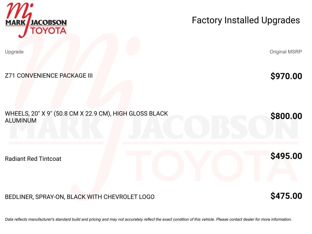 Elevate your driving experience with a wealth of premium features, including a stunning 11.3 Advanced Color LCD Display, Apple CarPlay/Android Auto integration, and a Bose premium audio system. The Z71 Convenience Package III takes your comfort to new heights, offering heated and ventilated front seats, a heated steering wheel, and a rear center armrest for unparalleled relaxation.