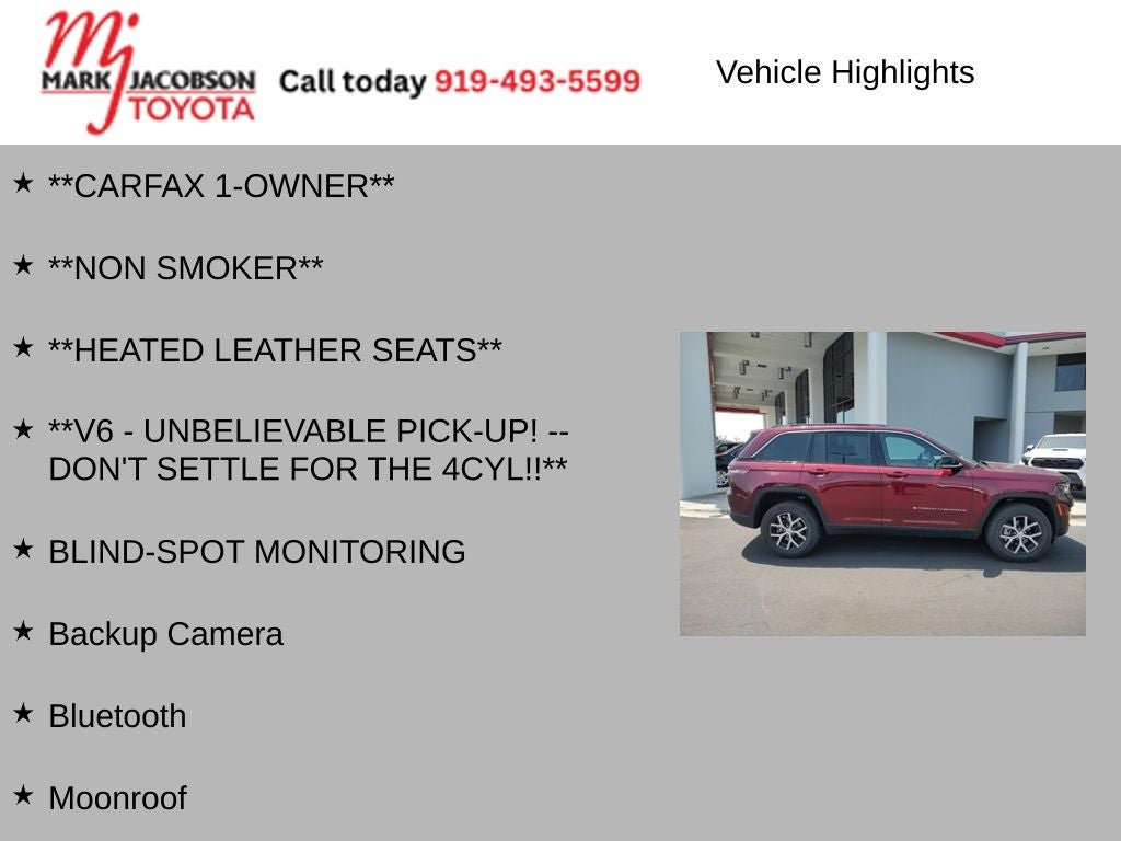 This CARFAX 1-owner Grand Cherokee Limited has been meticulously maintained and is ready to take you on your next adventure. With its impressive towing capacity, spacious interior, and advanced technology, this SUV is the perfect blend of capability and comfort.