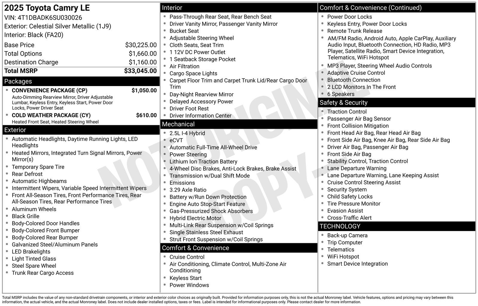 Powered by a 2.5L 4-Cylinder 16V DOHC engine paired with an eCVT and AWD, this Camry LE delivers an exceptional balance of efficiency and capability. With an impressive EPA-estimated 51 MPG in the city and 49 MPG on the highway, you'll enjoy outstanding fuel economy and reduced trips to the pump.