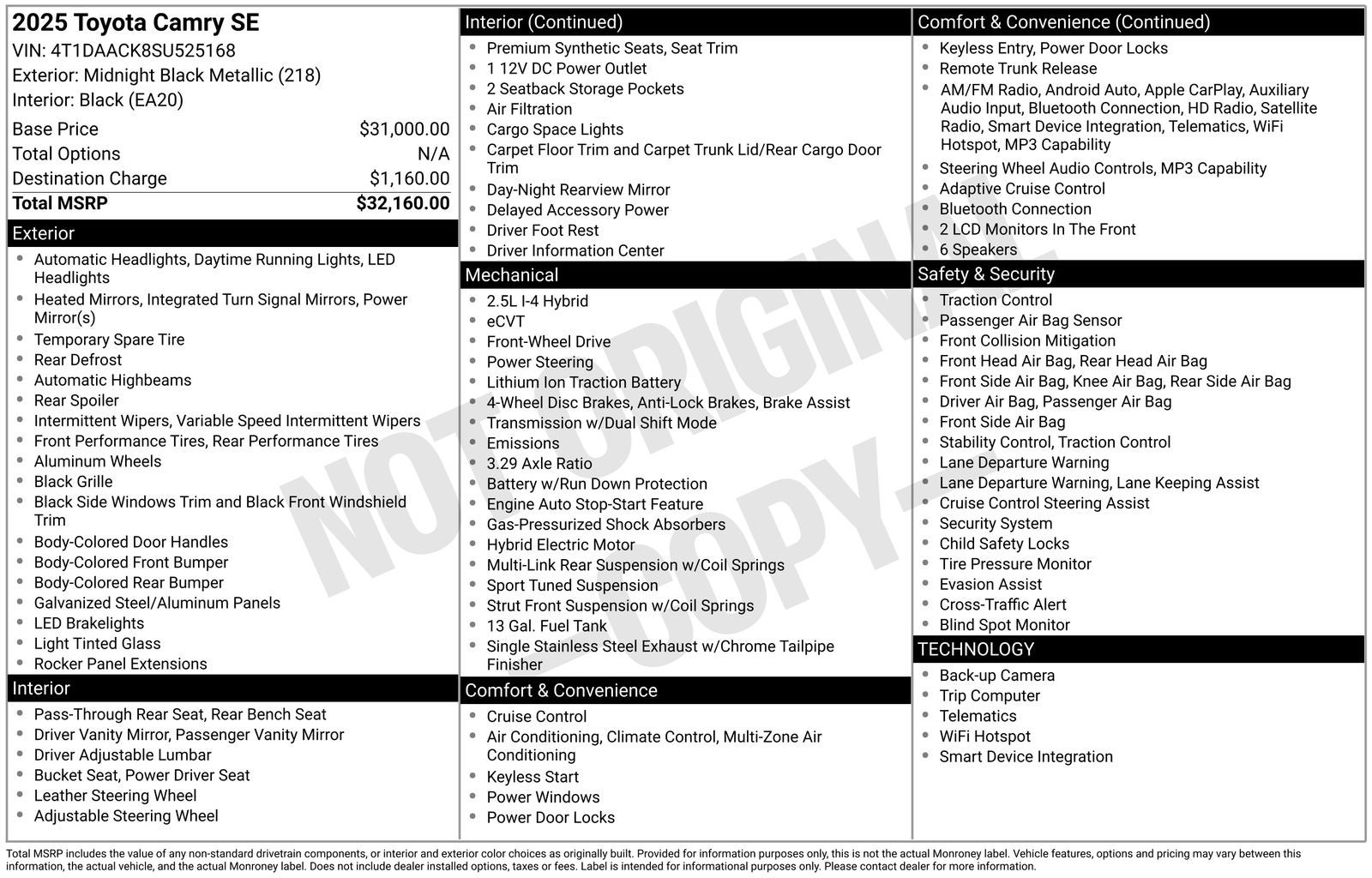 Powered by a 2.5L 4-cylinder engine paired with an eCVT transmission, this Camry SE delivers an impressive 48 city/47 highway MPG, making it an exceptional choice for the eco-conscious driver. The independent suspension and speed-sensing steering provide a smooth and responsive ride, while the four-wheel disc brakes with ABS ensure confident stopping power.
