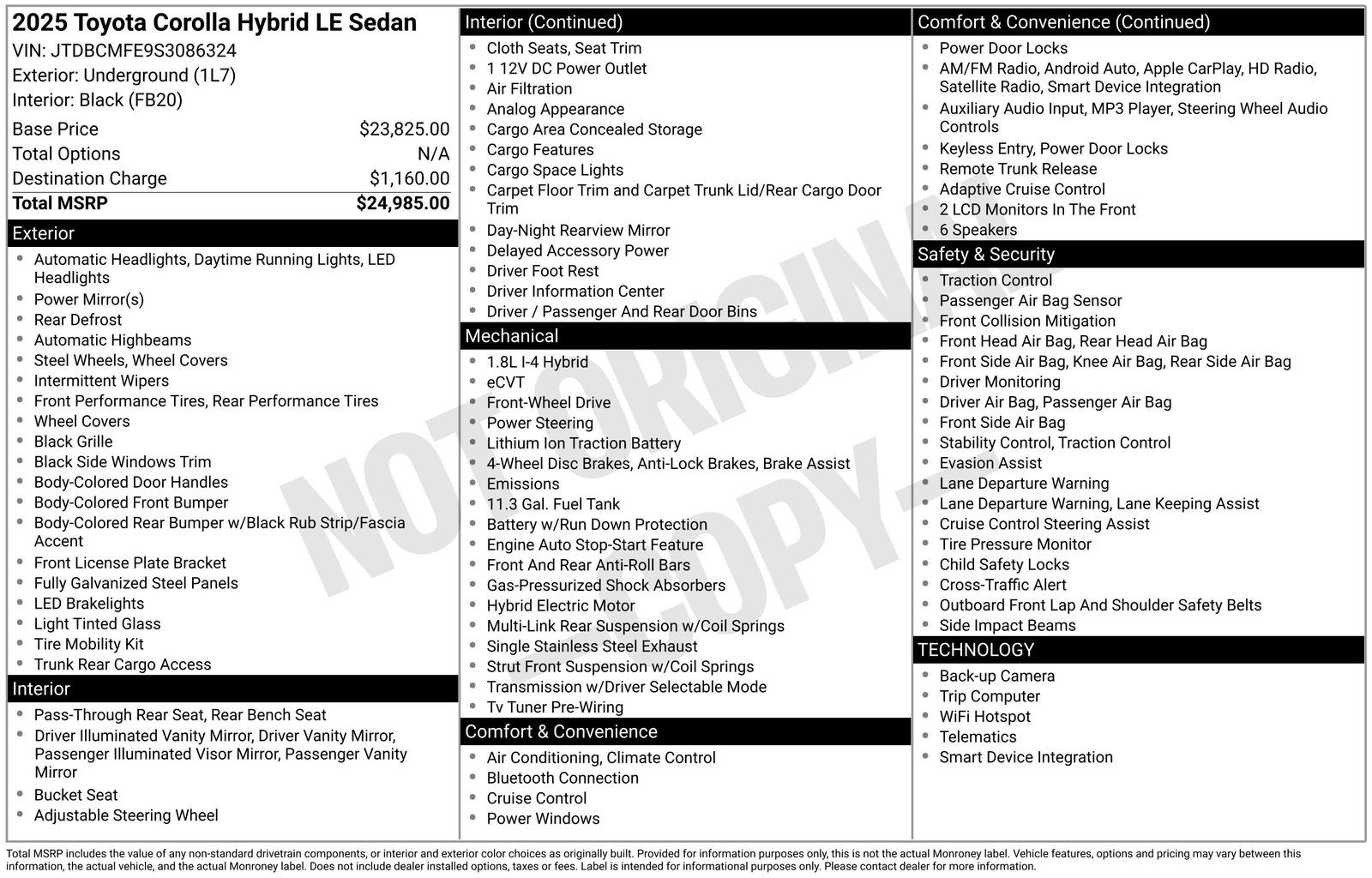 Boasting an impressive array of features, this Corolla Hybrid LE is equipped with: